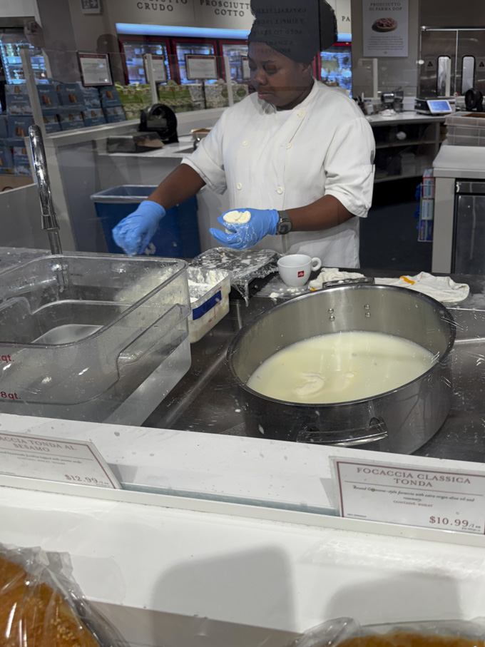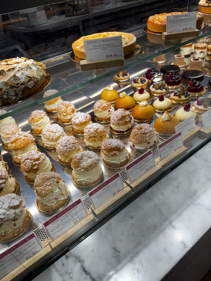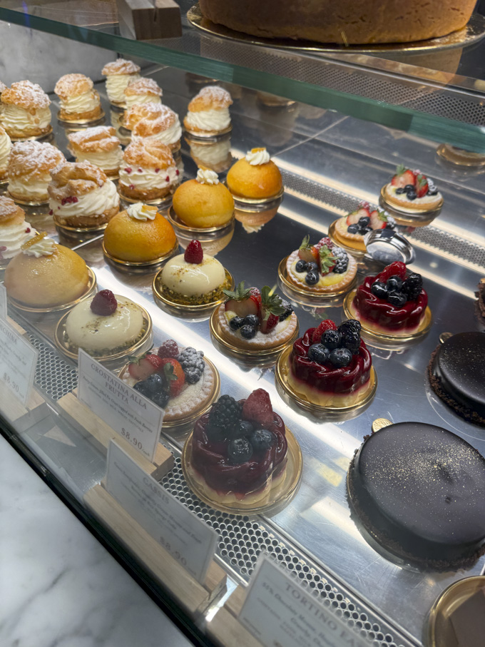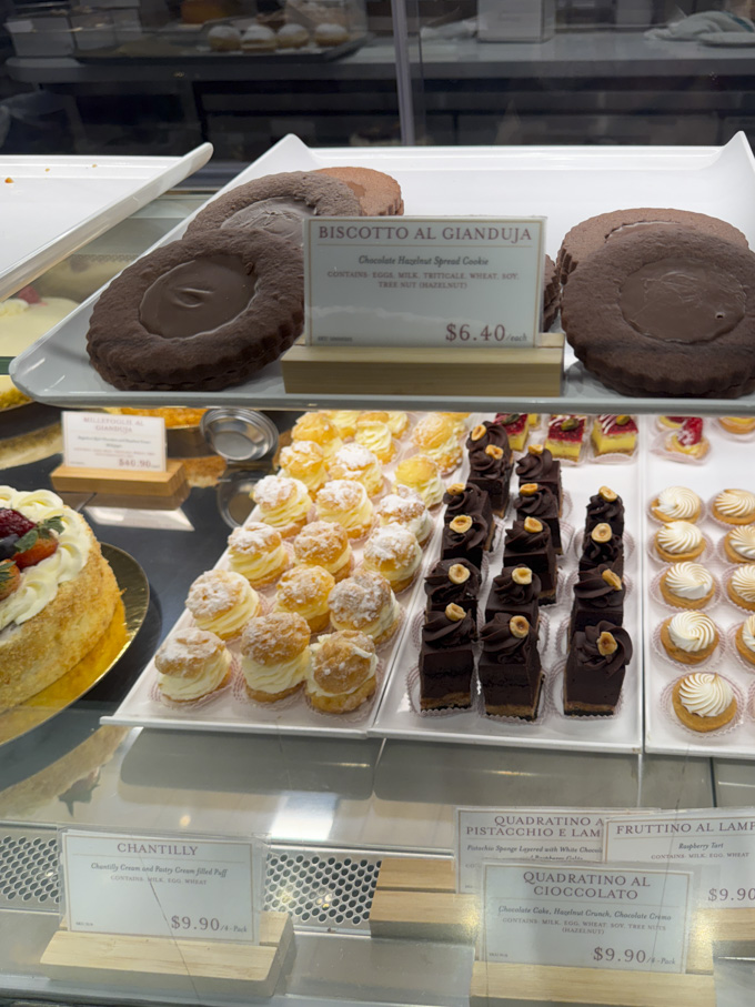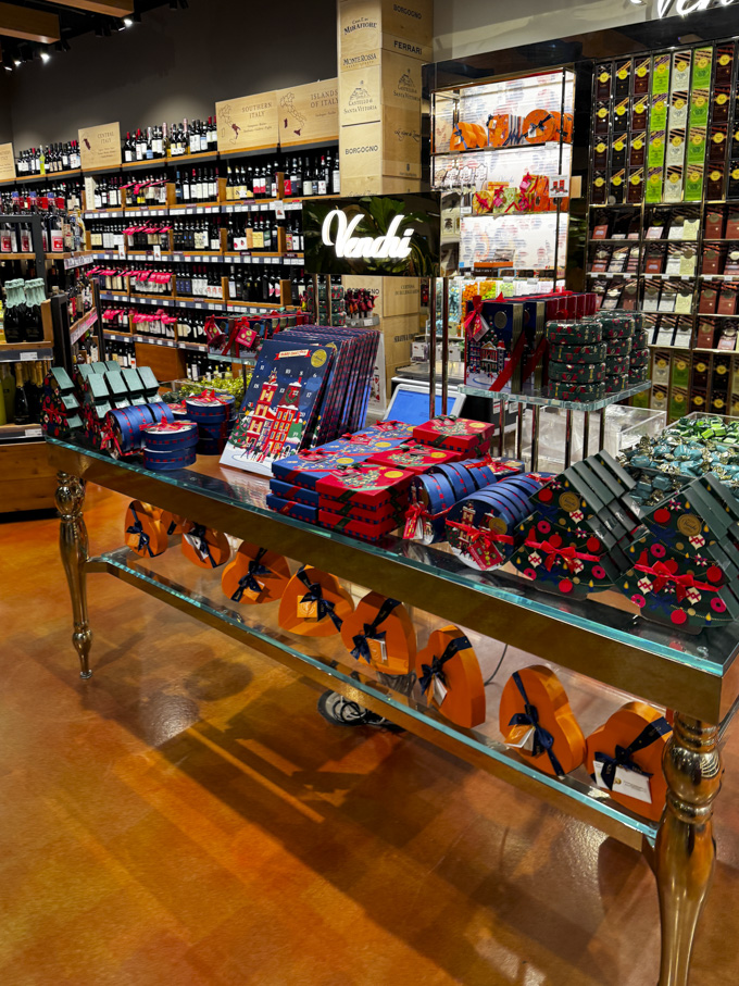 After the meal, it is easy to spend time exploring the different marketplace sections of Eataly. Counters dedicated to fresh pasta, cheeses and salumi, seafood, meats, and baked goods sit alongside shelves stocked with imported Italian pantry items, sauces, olive oils, and sweets.